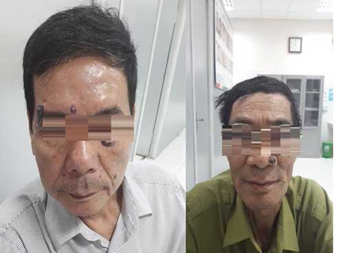 Tương tự, ông Đặng Văn B. (62 tuổi, Gia Lâm, Hà Nội) cũng phát hiện nhiều khối bất thường vùng mặt cách đây nhiều năm, không điều trị gì. Gần đây, các khối mụn trên mặt to dần, chảy dịch màu tối có kích thước 3x4cm và 3cm nên mới đi viện.