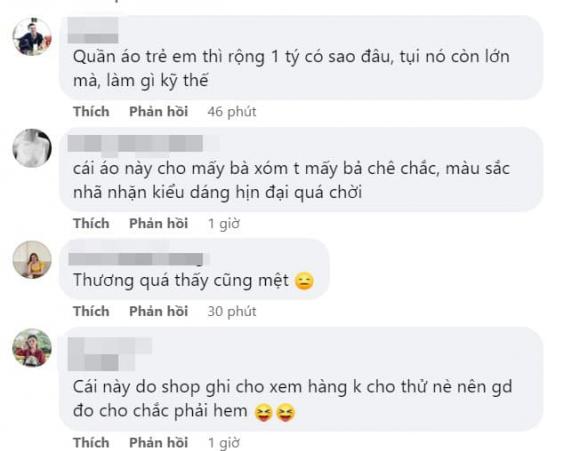 Dưới bình luận, nhiều cư dân mạng bình luận về câu chuyện: "Đồng tiền họ làm ra khó khăn nên cân nhắc chút thôi mà, thông cảm dùm đi", "Quần áo trẻ em thì rộng 1 tý có sao đâu, tụi nó còn lớn mà, làm gì kỹ thế", "Thương quá thấy cũng mệt", "Chủ shop khóc thét", "Anh shipper thân thiện, xứng đáng 100 điểm luôn ạ"...