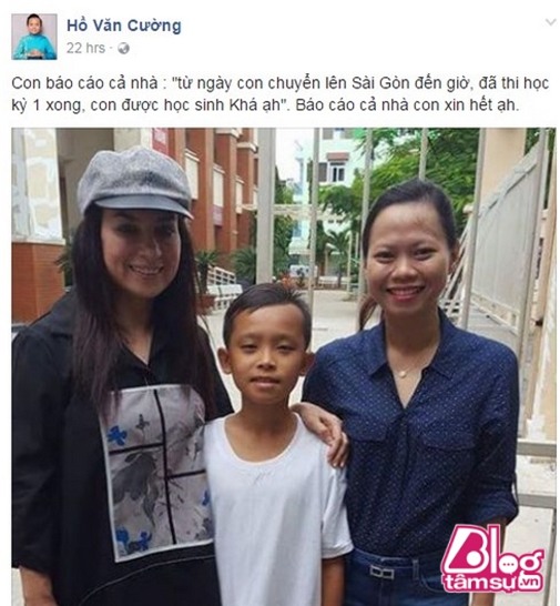 Mới đây, Hồ Văn Cường đã ‘báo cáo’ tình hình học tập trên Facebook với những người yêu mến. Ngoài khoe sổ liên lạc thì cậu bé còn khoe đạt lực học khá. Nhiều người đã vào khen ngợi Hồ Văn Cường học như vậy là quá tốt rồi. Từ một trường ở tỉnh chuyển lên trường chuyên, lại song song làm nhiều việc một lúc nên được học lực khá đã là rất cố gắng. Trước đó, khi còn ở Gò Công, Tiền Giang, dù nhà nghèo, hoàn cảnh khó khăn nhưng Hồ Văn Cường luôn được khen là học rất giỏi, được thầy cô và các bạn yêu mến.