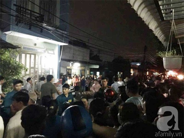 trường vụ án mạng. Bên ngoài rất đông người dân theo dõi.