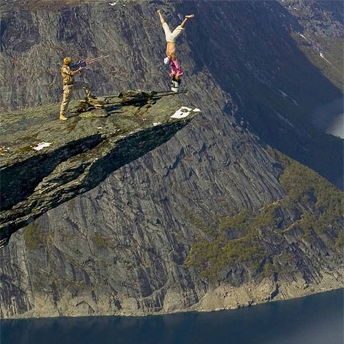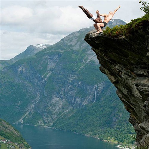 Ngoài ra, Eskil Ronningsbakken còn có nhiều màn biểu diễn nguy hiểm khác như thăng bằng đôi, lộn ngược trên vách đá...