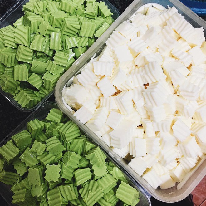 Khoảng thời gian trước, chè khúc bạch chỉ có màu trắng nguyên thủy của kem whipping, nhưng hiện tại, khúc bạch có thêm nhiều hương vị và màu sắc, vui mắt hơn. Và ngoài nhãn, người ta có thể thay bằng quả vài vào phần chè.