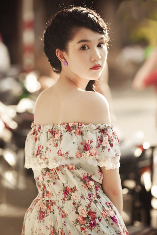 Chiếc váy hoa hở vai khiến Ngọc Trinh cực kì gợi cảm mà không quá phô trương.