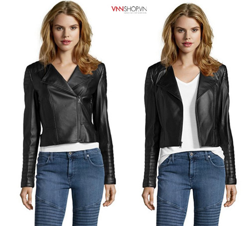 Áo khoác da BCBG Max Azria màu đen thiết kế khỏe khoắn được các cô nàng yêu phong cách năng động ưa chuộng.