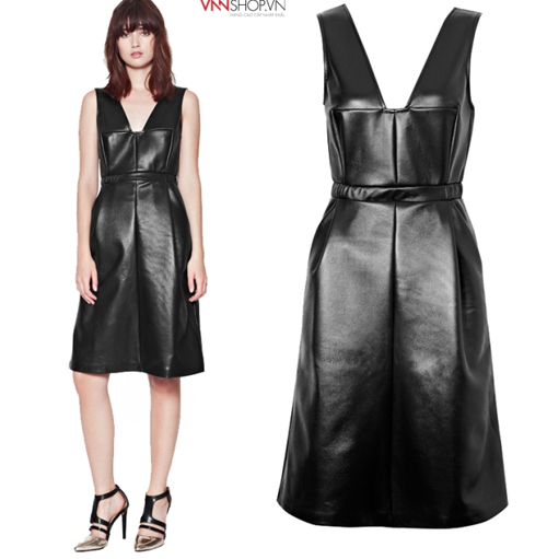 Váy da cao cấp của thương hiệu French Connection thiết kế tay sát nách, cổ chữ V là style của cô nàng hiện đại.