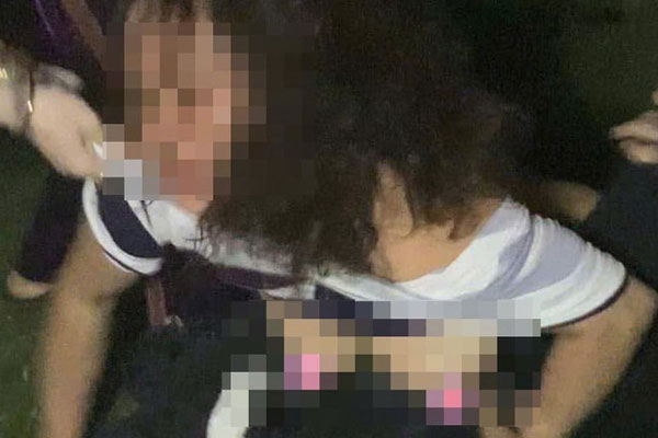 Cảnh này được con gái bà Hoa (đến sau) dùng điện thoại quay lại. Khoảng một tháng sau, nạn nhân phát hiện hình ảnh bị đánh, lột đồ, cùng bình luận xúc phạm mình trên Facebook.