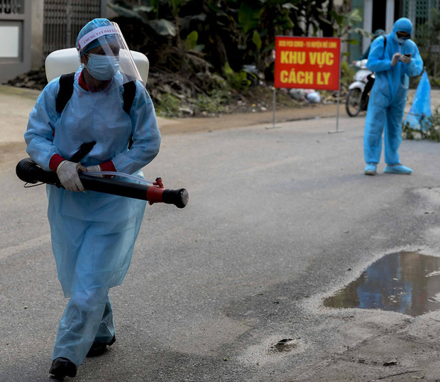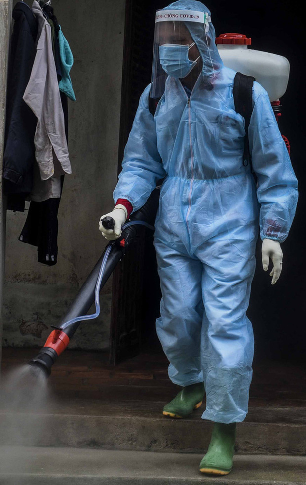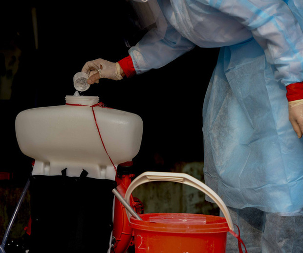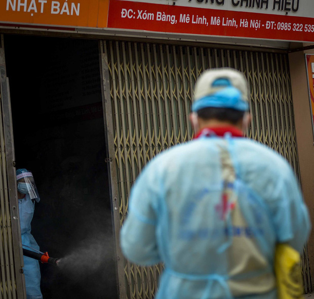 Đến 17h cùng ngày, công việc này kết thúc. Trong buổi chiều 8/4, đội phun tiêu trùng, khử độc của Trung tâm Y tế huyện Mê Linh với hơn 10 người đã mất 3 tiếng mới hoàn thành công việc.