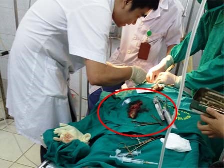 Ngày 17-7, BV Đà Nẵng cho biết nơi đây vừa phẫu thuật gắp một mẩu xương kích thước 0,7 x 1 cm, suốt một năm nằm trong phổi cho một bệnh nhân Quảng Ngãi.
