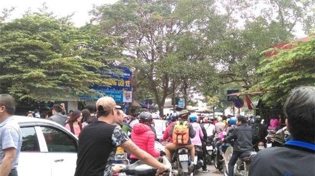 Ùn tắc trước điểm gửi xe miễn phí ở phủ Tây Hồ. |