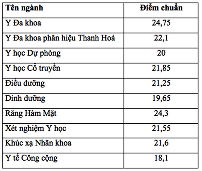 Trong đó, ĐH Y Hà Nội có điểm chuẩn đứng đầu là 29,25 với ngành Y đa khoa (tăng 3,25 điểm so với năm 2016). Đây là điểm chuẩn cao nhất từ trước đến nay. Năm 2018, ngành Y đa khoa của ĐH Y Hà Nội có mức trúng tuyển 24,75, giảm 4,5 điểm.