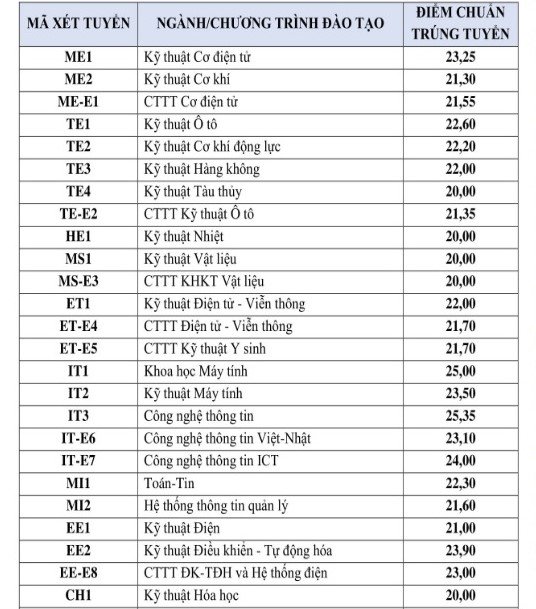 Cụ thể điểm chuẩn trúng tuyển các ngành của Trường ĐH Bách khoa Hà Nội năm 2018 như sau: