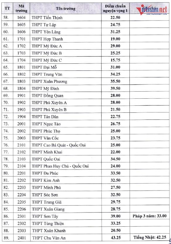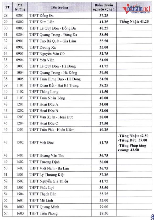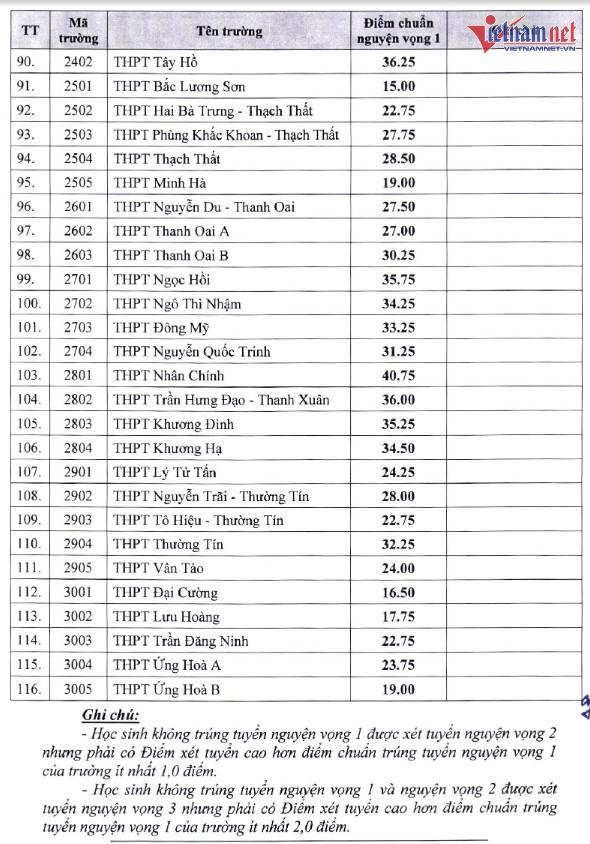 Điểm chuẩn lớp 10 Hà Nội với các thí sinh diện F0 xét tuyển như sau: