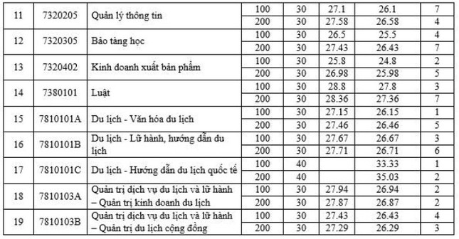 Năm nay, điểm trúng tuyển theo phương thức xét điểm thi THPT vào Trường ĐH Văn hóa Hà Nội dao động từ 22,85 đến 28,9 điểm theo thang 30 điểm. Báo chí là ngành có điểm chuẩn cao nhất vào Trường ĐH Văn hóa Hà Nội với 28,9 điểm theo tổ hợp C00.