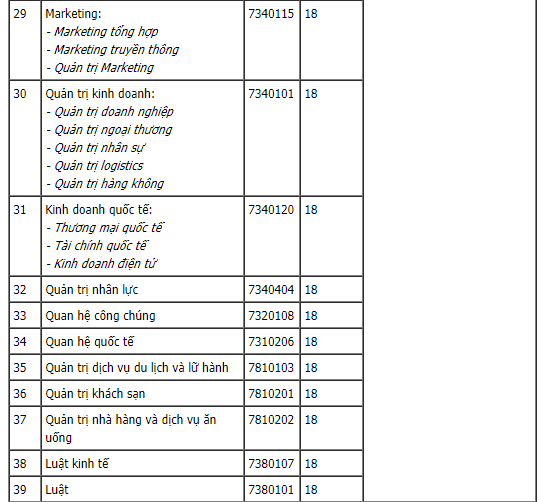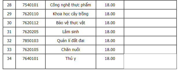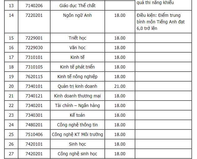 Mức điểm trên dành cho thí sinh khu vực 3 (không ưu tiên đối tượng, khu vực). Mức chênh lệch điểm trúng tuyển giữa hai nhóm đối tượng kế tiếp là 1.00 điểm; giữa hai khu vực kế tiếp là 0.25 điểm.