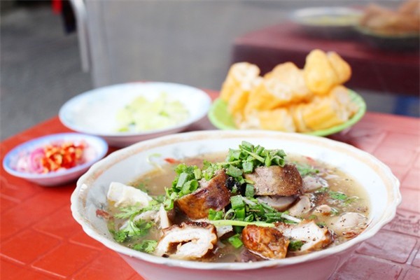 lòng non, tim, gan, phổi... Cháo lòng có màu nâu đặc trưng do có huyết