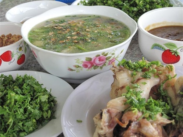 không thể thiếu được các loại rau sống xắt nhuyễn, hành ngò, giá trụng