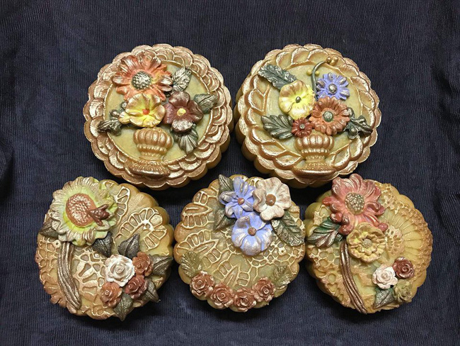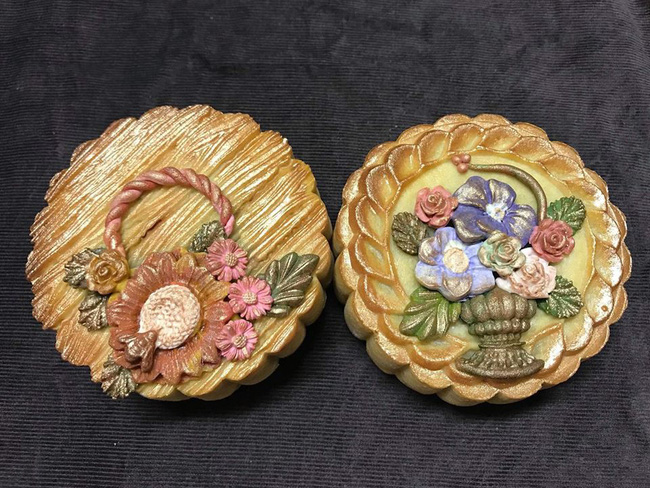 Thêm một kiểu làm bánh Trung thu hoa nổi nhưng được làm từ khuôn silicon và được phết 1 lớp nhũ lấp lánh lên trên.