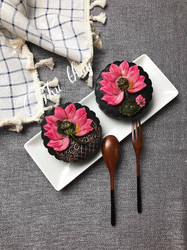 Cũng là bánh hiện đại nhưng tác giả Trần Thu Thủy cực mê mẫu khuôn hoa sen, những bông hoa nổi bật chỉ nhìn thôi đã thấy vô cùng ấn tượng.