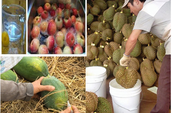 Hiện trên thị trường có nhiều loại hóa chất được sử dụng nhằm mục đích biến hoa quả từ xanh non thành chín đẹp, tươi bóng loáng và bảo quản được nhiều tháng.