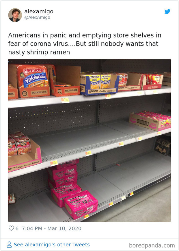 Những ngày qua, dịch Covid-19 đã tạo nên làn sóng mua sắm khổng lồ tại các siêu thị ở Mỹ và các nước châu Âu. Các loại hàng hóa, đặc biệt là nhu yếu phẩm như giấy vệ sinh, nước rửa tay và thực phẩm liên tục "bốc hơi" khỏi các kệ hàng. Nhiều người chậm chân thậm chí phải ra về tay trắng vì không tìm mua được món đồ cần thiết.