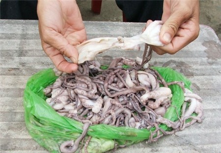 xuất hiện không ít mực giả làm từ sắn dây. Mực giả được làm từ bột gạo,