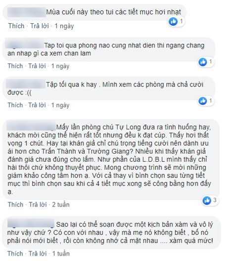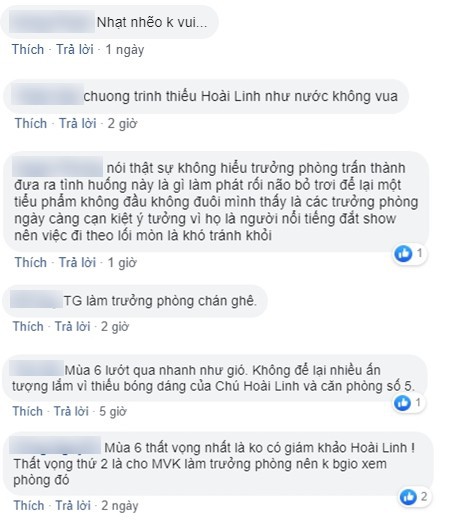 "Mùa 6 lướt qua nhanh như một cơn gió, không để lại ấn tượng gì vì thiếu vắng Hoài Linh và căn phòng thứ 5", "Việc khách mời fan ai đông người ấy nhận cúp đã khiến chương trình bị nhạt", "Chương trình thiếu vắng Hoài Linh như một nước không có vua", "Mùa 6 nhạt nhẽo, không vui".
