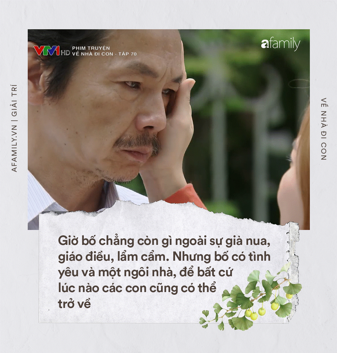 "Giờ bố chẳng còn gì ngoài sự già nua, giáo điều, lẩm cẩm. Nhưng bố có tình yêu và một ngôi nhà, để bất cứ lúc nào các con cũng có thể trở về..! Về nhà đi con!" - cả một tập phim vỏn vẹn chưa đầy 30 phút tối qua đã gói lại chỉ trong những câu thoại khiến triệu dân Việt Nam phải khóc này của bố Sơn.