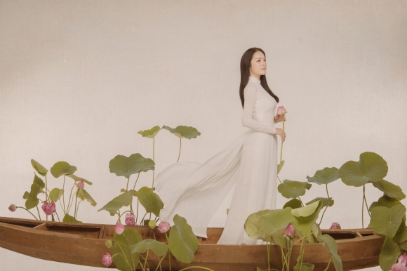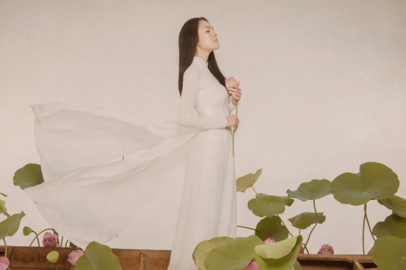 Tà áo dài trắng đơn thuần càng làm tôn thêm vẻ đẹp "băng thanh ngọc khiết" của Dương Cẩm Lynh