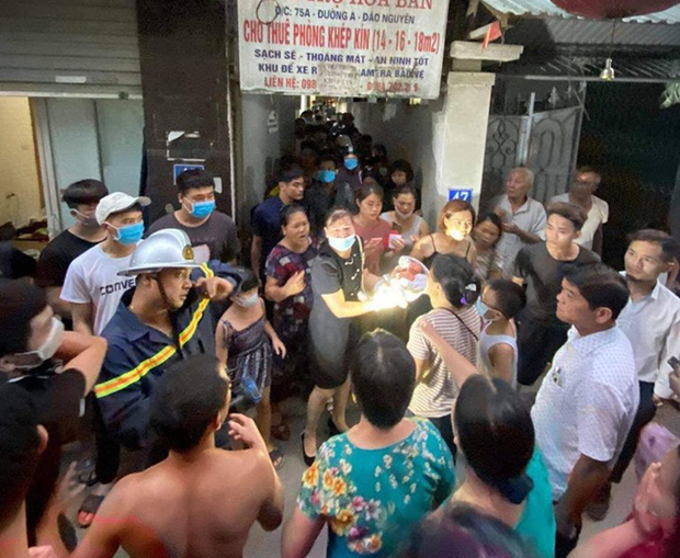 Sau đó, người dân phát hiện một em bé không mặc quần áo, còn nguyên dây rốn bị bỏ rơi ở khe tường hẹp. Lúc này, người dân đã phải khoan, đục tường để giải cứu cháu bé ra ngoài rồi cùng lực lượng chức năng đưa bé đi cấp cứu.