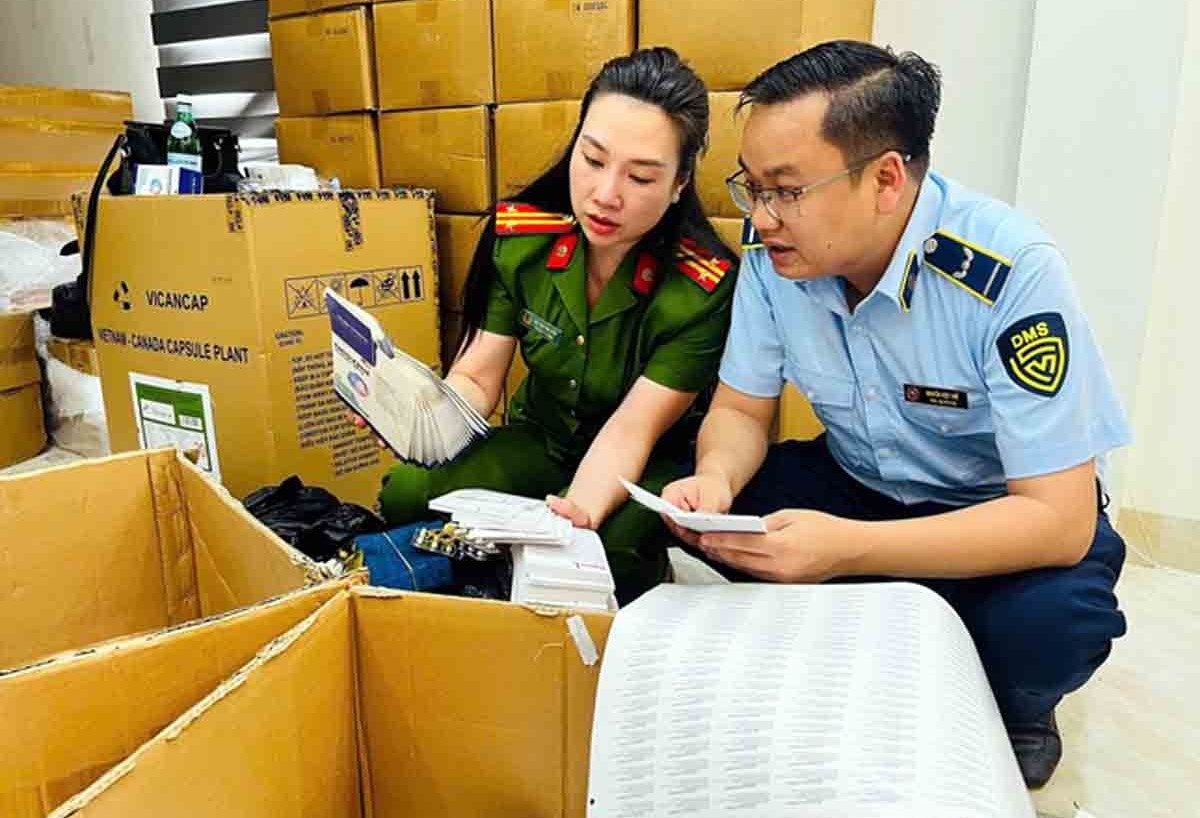 Công an TP Hà Nội đã thu giữ được hơn 28.500 hộp thực phẩm chức năng; gần 35.000 lọ thực phẩm chức năng; gần 39.000 vỉ chứa các viên thực phẩm chức năng; các loại máy móc, dây chuyền, công cụ, nguyên vật liệu… để sản xuất hàng giả, tương đương hơn 100 tấn hàng hóa là thực phẩm chức năng, thiết bị y tế giả, với khoảng hơn 100 mã sản phẩm khác nhau.