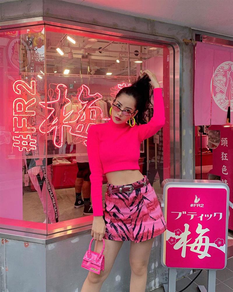 Hồng fuchsia rất xinh, rất nổi nhưng lại không hề dễ diện và có thể làm xỉn da người mặc. Nhưng Chi Pu lại có thể diện đẹp xuất sắc, thậm chí trông cô còn vừa sang chảnh vừa ngọt ngào như búp bê.