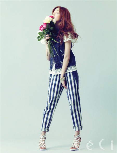 Han Seon Hwa, thành viên nhóm nhạc Secret cá tính với quần kẻ dáng thụng.