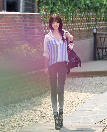 Không những không làm mất đi sự trẻ trung vốn có của những dòng kẻ, đây còn là gợi ý hấp dẫn cho các vóc dáng không được mảnh mai. Còn gì tuyệt hơn khi chỉ cần lựa chọn một chiếc áo hoặc đầm kẻ, bạn cũng có thể "ăn gian" thêm vài centimet chiều cao. Đó cũng là lý do rất nhiều sao Hàn diện kẻ sọc khi xuất hiện trong sự kiện hay cả khi giản dị dạo phố.