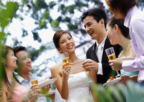 cũng đến màn đôi tân lang tân nương sóng đôi nhau đi đến chúc rượu từng