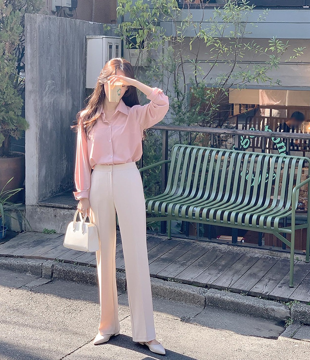 Áo sơ mi màu hồng pastel là món thời trang được yêu thích từ mùa hè sang thu. Mẫu áo này rất tươi tắn, trẻ trung nhưng vẫn có sự trang nhã. Đặc biệt khi kết hợp áo sơ mi hồng pastel với quần màu trắng kem, bạn sẽ có được tổng thể trang phục tinh tế.