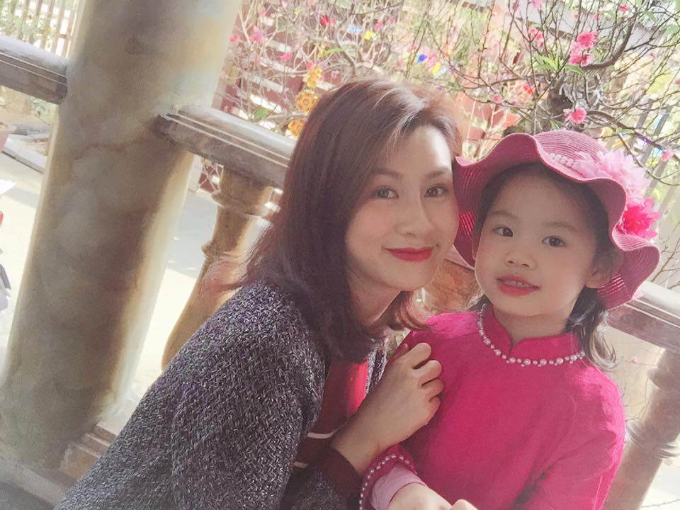 Diễn viên Huyền Trang và con gái.