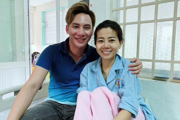 Hình ảnh Mai Phương ráng mỉm cười trên giường bệnh.