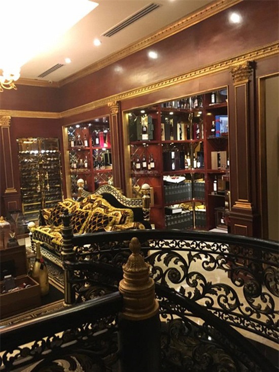 Từng chi tiết nhỏ đều hết sức tinh xảo. Phòng khách có quầy bar trưng bày