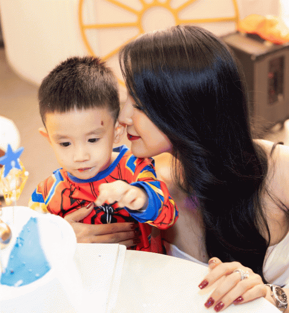 Mới đây nhất, trên Instagram của con trai Diệp Lâm Anh đã đăng tải hình ảnh ba mẹ con người đẹp vui chơi trong khu giải trí, kèm dòng trạng thái: "Thanh niên Bboy nhẹ cân quá, vừa treo lên dây muốn bay ngược lên trời". Quá ốm nên không đủ điều kiện tham gia trò chơi, con trai Diệp Lâm Anh chỉ đứng nhìn chị gái và các bạn chơi vui với vẻ mặt vừa thương vừa yêu.