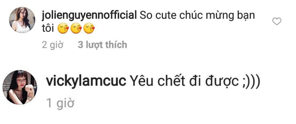 Kèm theo đó, Diệp Lâm Anh viết: "I love you Heo. Thank you for everything (Tạm dịch: Em cảm ơn Heo (biệt danh của bạn trai Diệp Lâm Anh). Cảm ơn anh vì tất cả)". Ngay sau khi chia sẻ, nhiều fan hâm mộ lẫn bạn bè thân thiết đã vào chúc phúc và chia sẻ niềm vui với Diệp Lâm Anh.