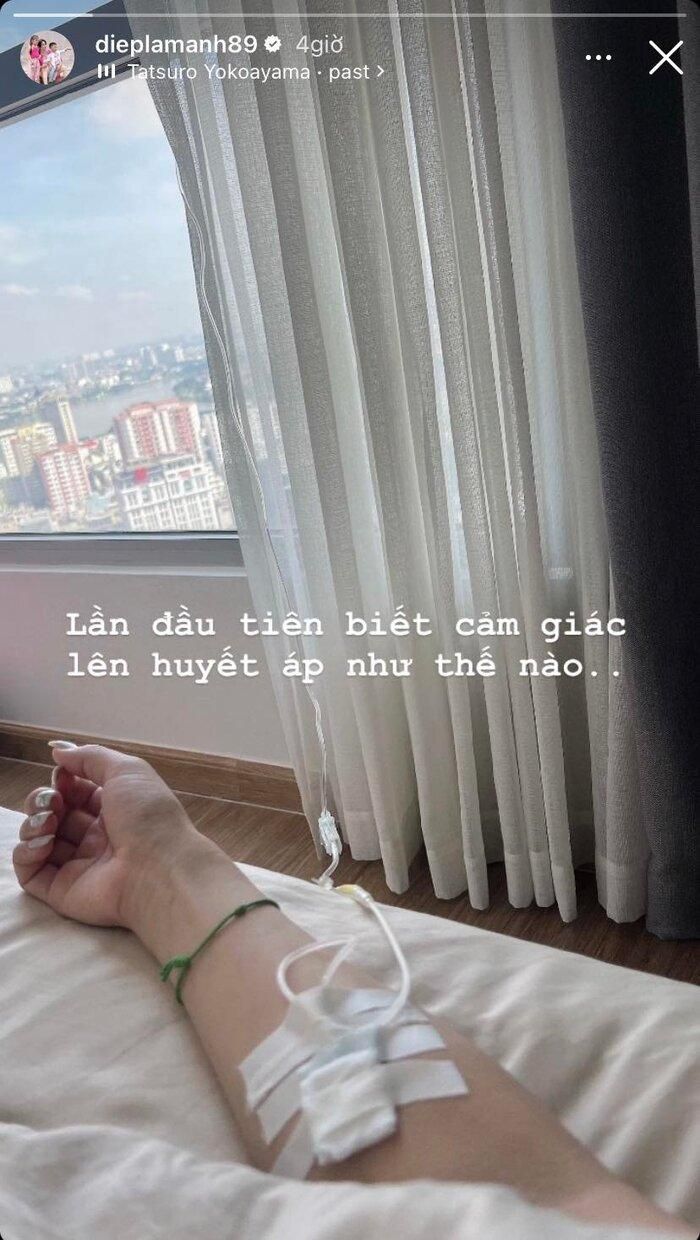 Cụ thể Diệp Lâm Anh chia sẻ: "Lần đầu tiên biết cảm giác lên huyết áp như thế nào". Trong khung hình dễ dàng nhận thấy người đẹp đang truyền nước ở bệnh viện nhằm điều trị tình trạng sức khỏe không ổn định. Đông đảo khán giả đều bày tỏ sự lo lắng cho cựu người mẫu và hy vọng cô sớm hồi phục sức khỏe trong một ngày gần nhất.
