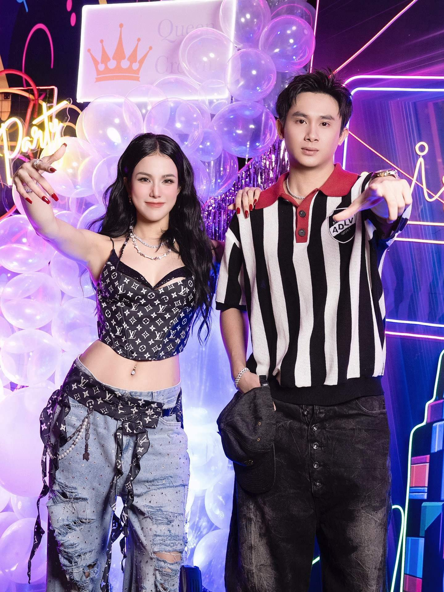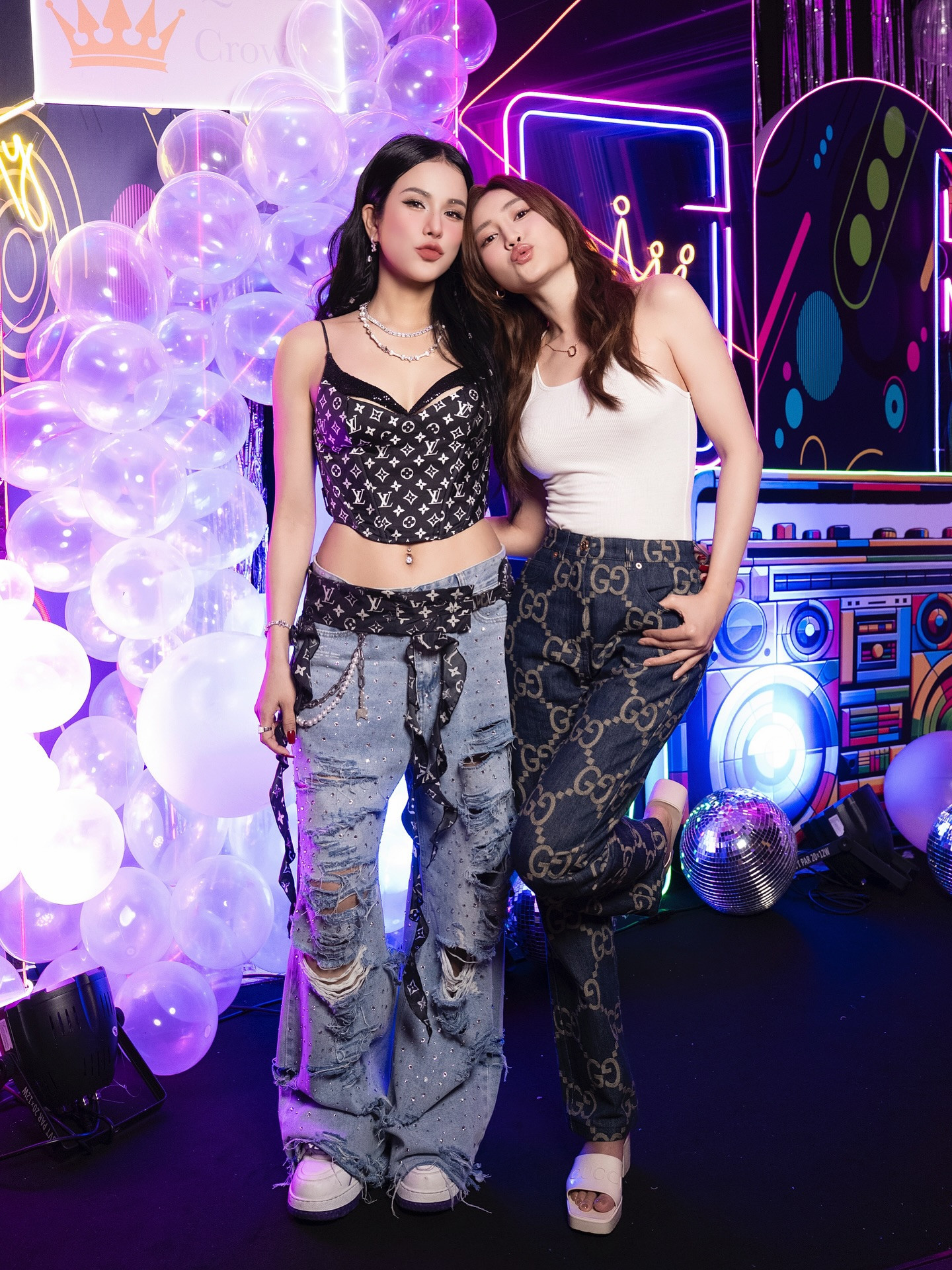 Theo đó, dresscode của bữa tiệc sinh nhật năm nay của nàng cựu dancer chính là style Hiphop Y2K. Chủ nhân của bữa tiệc xuất hiện với giao diện vừa ngầu vừa quyến rũ với áo hai dây phối cùng quần denim rách ống suông khoe cơ bụng săn chắc.