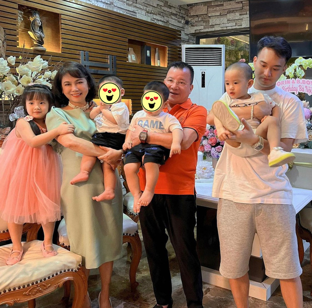 Đại gia Nghiêm Đức bế con trai, vui vẻ chụp ảnh trong tiệc sinh nhật mẹ ruột