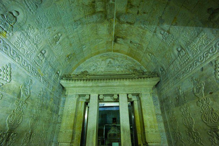 Những đường nét chạm khắc tỉ mỉ bên trong lăng mộ Càn Long.