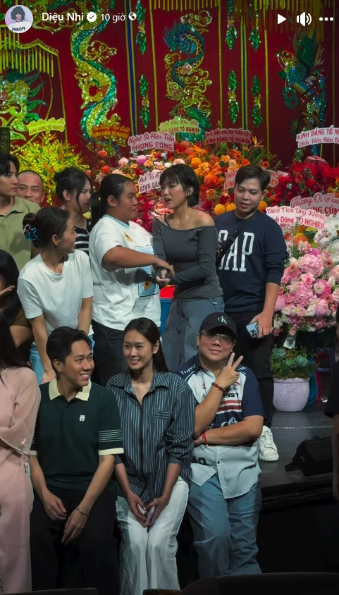 Mới đây, Diệu Nhi tham gia lễ cúng Tổ nghề ở Sân khấu Thế Giới Trẻ cùng dàn nghệ sĩ đình đám như Tiến Luật, Thu Trang, Anh Đức, Anh Phạm...