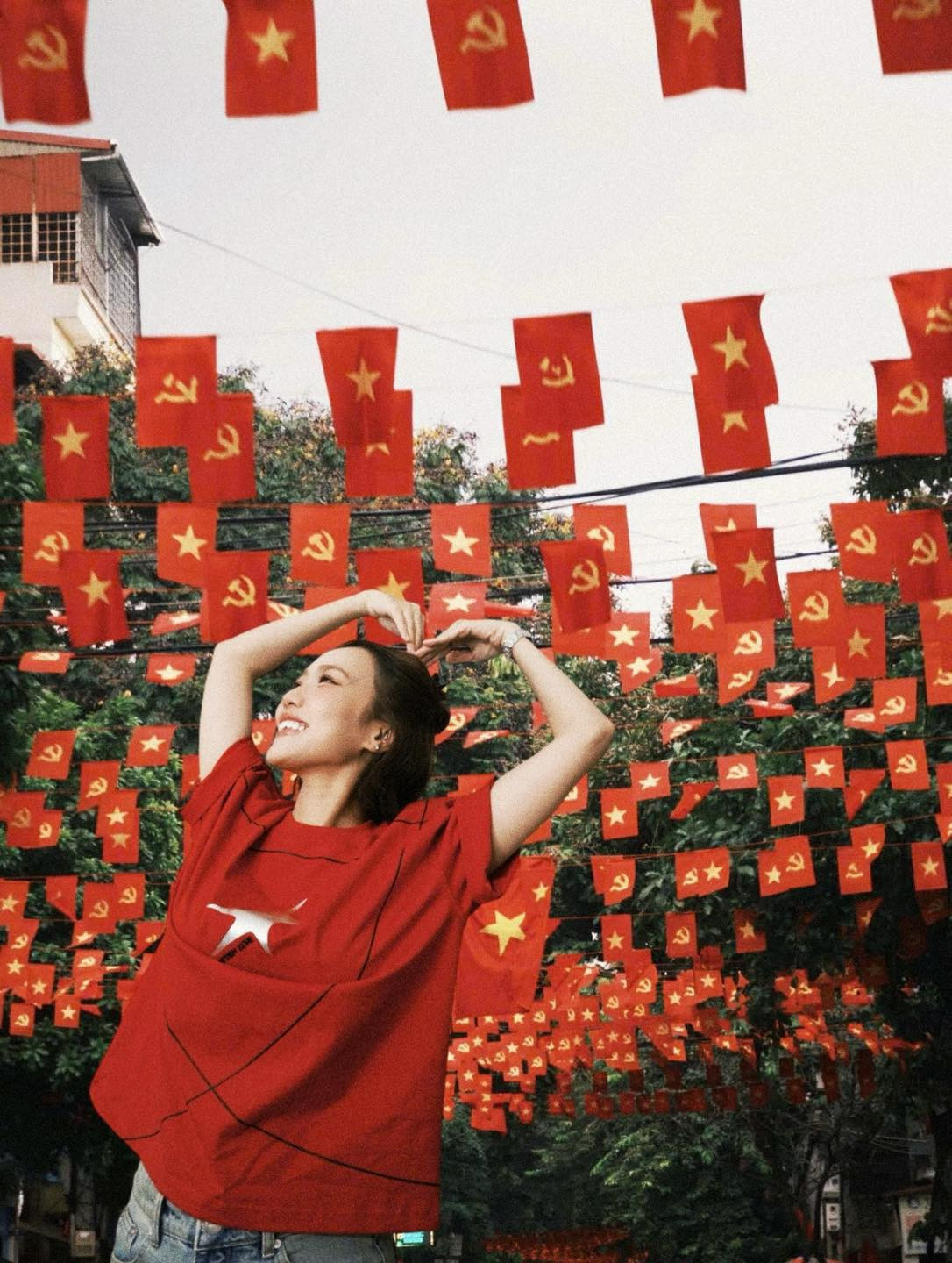 Xuất hiện tại lễ giỗ Tổ nghiệp, Diệu Nhi tự tin diện áo thun ôm sát kết hợp cùng quần jeans. Nữ diễn viên khoe vẻ đẹp rạng rỡ, vui vẻ chụp hình lưu niệm cùng mọi người.