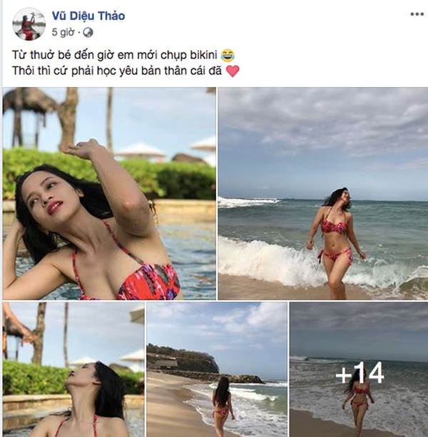 Đặc biệt, cô còn khoe rằng 'từ thuở bé đến giờ mới chụp ảnh với bikini'.