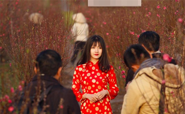 Rất nhanh chóng, cô gái có gương mặt mơ màng đẹp như tranh vẽ ấy đã được mọi người tìm ra. Đó là em Nguyễn Hoàng Kiều Trinh (22 tuổi), hiện đang học tập và sinh sống tại Sài Gòn. Kiều Trinh cho biết: "Em chụp bộ ảnh vườn đào trước Tết Nguyên đán năm 2016 bởi nhiếp ảnh gia Đỗ Xuân Bút, nhân dịp ra Hà Nội chơi và muốn lưu lại khoảnh khắc chụp cùng hoa đào thật trong thời tiết lạnh khoảng 10 độ. Em mong ước được làm điều này từ lâu lắm rồi, bởi trong miền Nam nơi em sống không có hoa đào và cái rét như thế".