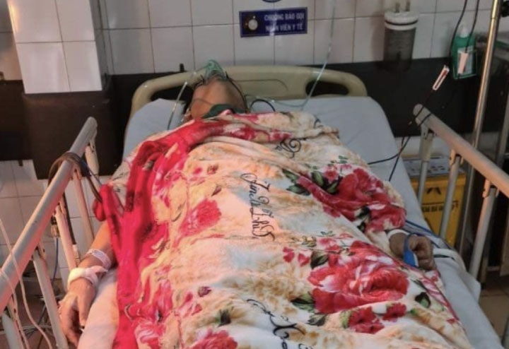 Em P. đang được điều trị tại bệnh viện. (Ảnh: Lê Gia)