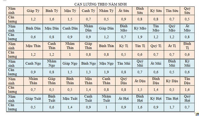 Cân lượng giờ sinh: Giờ Tý là 1,6